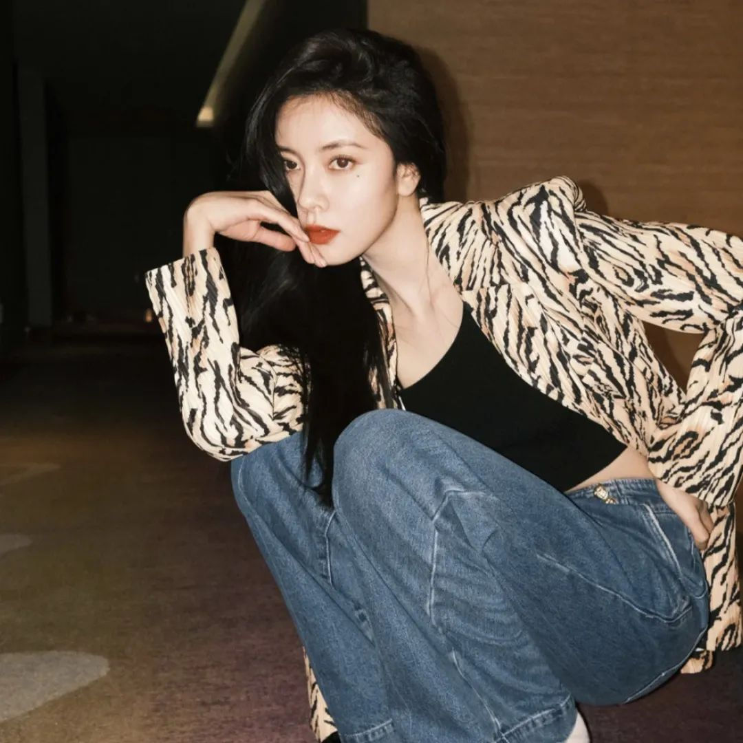 宋妍霏过年期间外穿虎纹西装搭配深色牛仔裤,狂野俏皮的同时还有一种街头酷飒感,大多数人都能驾驭喔。
